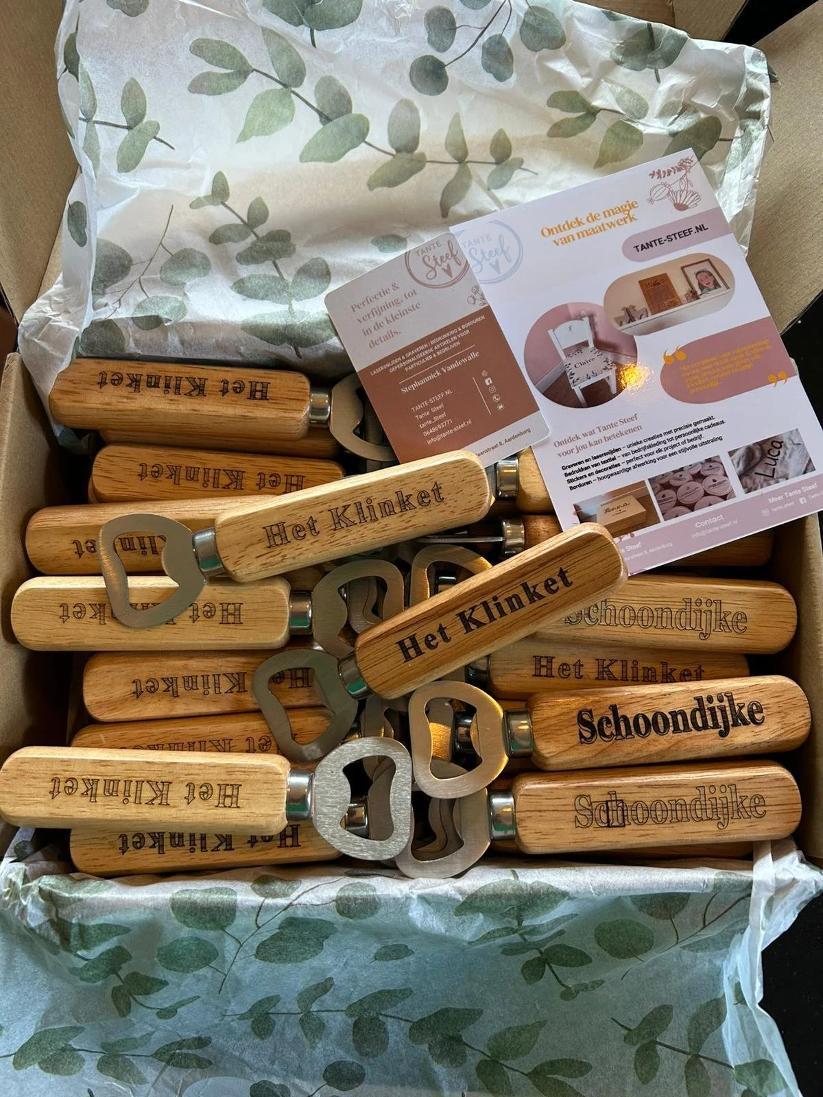 Bij Tante Steef bied ik een breed scala aan gepersonaliseerde producten en diensten, ontworpen om zowel particulieren als bedrijven te bedienen. Met oog voor detail en een focus op kwaliteit, zorg ik ervoor dat elk item precies op maat wordt gemaakt, volledig afgestemd op jouw wensen en behoeften.
